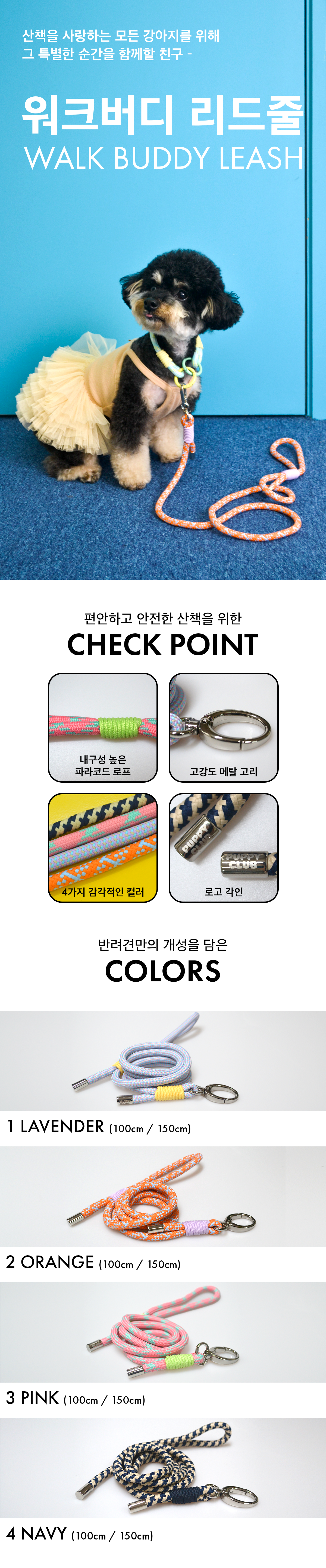 *WALK BUDDY LEASH는 리드줄 단독 구성으로 판매되며, 다양한 목줄과 자유롭게 매치 가능합니다.
