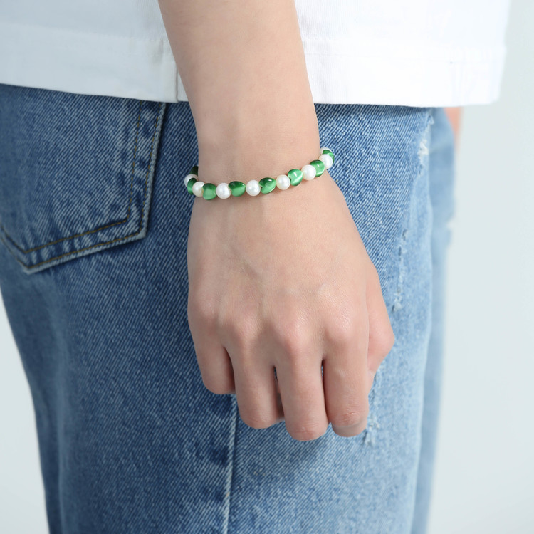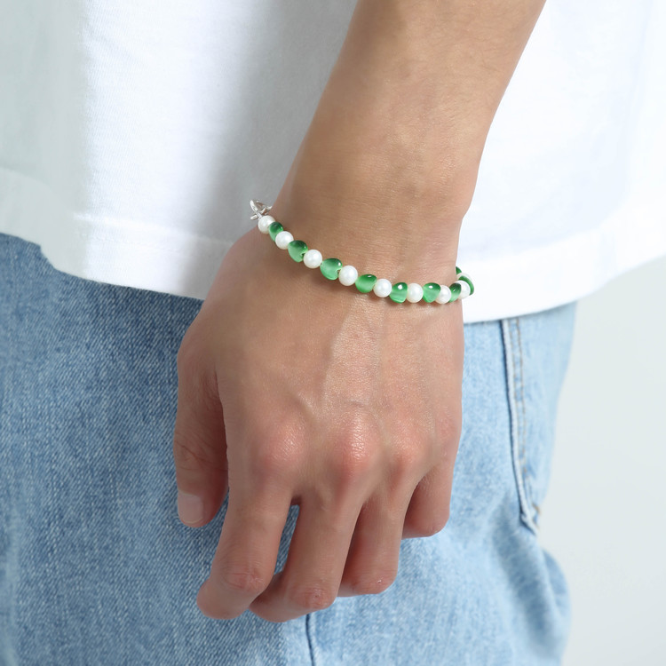 그린 켓츠아이, 담수진주, 925 스털링 실버, 서지컬 스틸 (로고 팬던트)